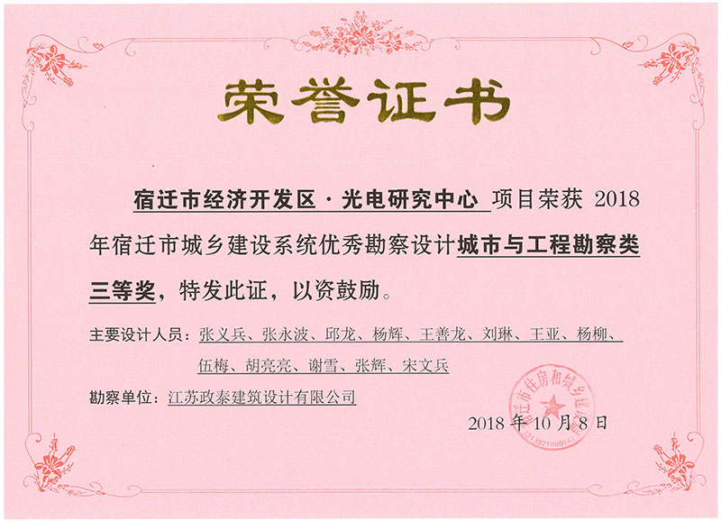 江蘇政泰建筑設(shè)計(jì)集團(tuán)有限公司榮譽(yù)獎(jiǎng)項(xiàng) |
